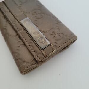 Gucci GG Key Holder Wallet Case Geniue Leather Small Gray Trifold Guccissima