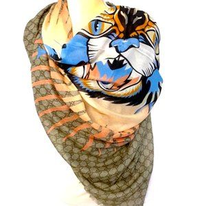 Gucci GG Logo Angry Cat Square Scarf/Shawl 55"X55"