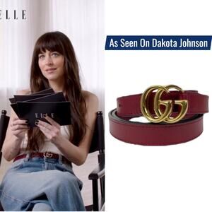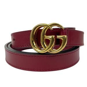 Gucci GG Logo Marmont Thin Leather Belt Rosso Ancora Red Size 100/40
