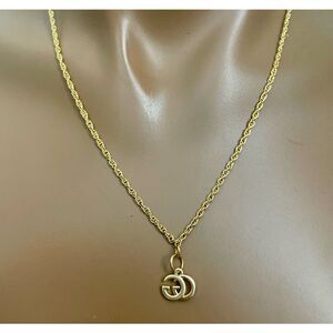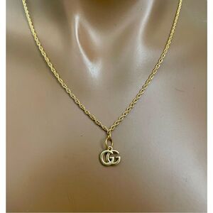Authentic Gucci GG logo pendant in gold color, refinished on a dainty & minimalist cable chain necklace
