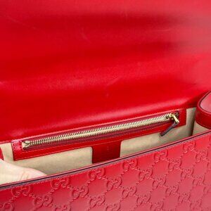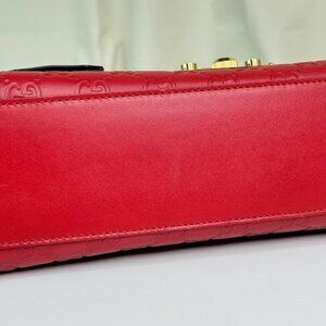 Gucci GG Logo Printed Red Leather Small Padlock Shoulder Bag with Gold Hardware