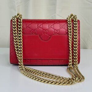 Gucci GG Logo Printed Red Leather Small Padlock Shoulder Bag with Gold Hardware