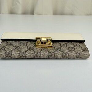 Gucci GG Logo Supreme Padlock Shoulder Bag White & Beige with Gold Hardware