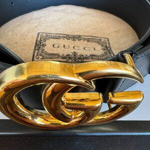 Gucci GG MARMONT LEATHER BELT WITH SHINY BUCKLE