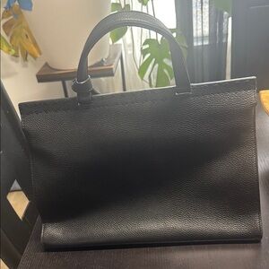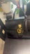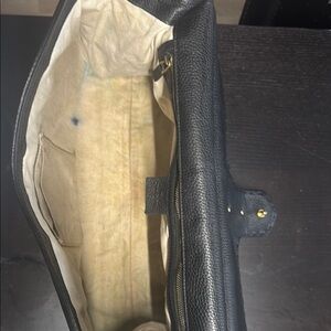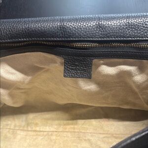 This luxurious Gucci satchel showcases a sleek black leather exterior complemented by striking gold-tone hardware. Its structured silhouette and high-quality craftsmanship make it a timeless addition to any collection.