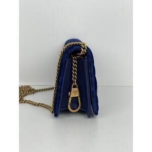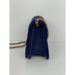 Gucci GG Marmont Blue Velvet Gold-Tone Chain Flap Crossbody Bag