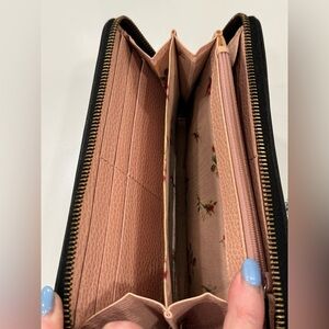 Gucci GG Marmont Bow Zip Around Wallet Black Leather Gold Logo