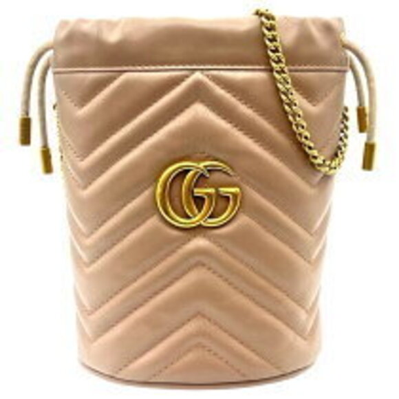 Gucci GG Marmont Bucket Bag pink Beige leather shoulder Includes a Certificate of Authentication!