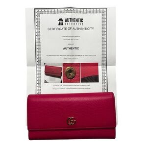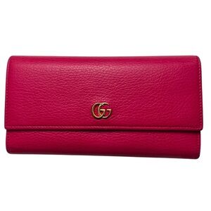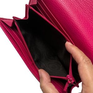 Gucci GG Marmont Calfskin Pebbled Leather Hot Pink Barbie Continental Wallet