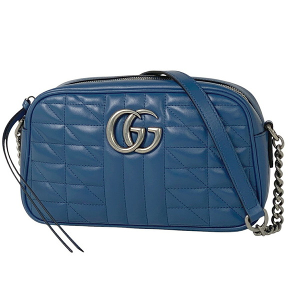 Gucci GG Marmont Chain Shoulder Bag Quilted Leather Blue
