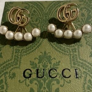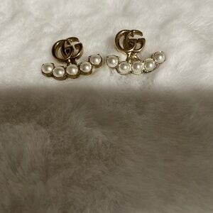 NWOT Gucci GG Marmont earrings. You can wear as gold GG studs or the section with the pearls as a complete earring.