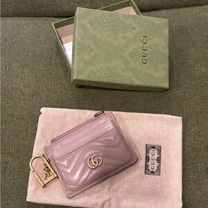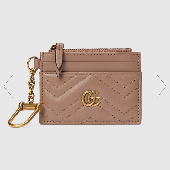Gucci GG Marmont Keychain Wallet Dusty Pink Leather