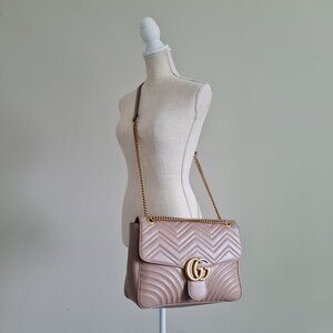 Gucci GG Marmont Large Shoulder Bag Dusty Pink Rose Mauve Matelasse Gold Rare