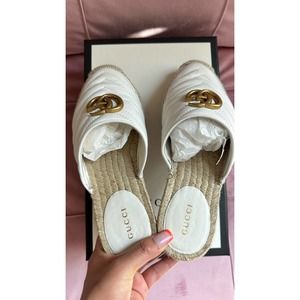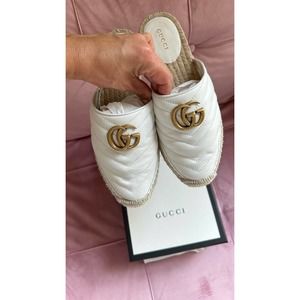 100% Authentic Gucci GG Marmont Matelasse White Espadrilles Mules