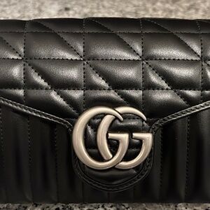 Gucci GG Marmont Mini Bag Black Leather Wallet On Chain