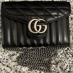 Gucci GG Marmont Mini Bag Black Leather Wallet On Chain in Excellent condition