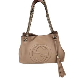 The Mini GG Marmont bag has a softly structured shape and a flap closure with Double G hardware. The sliding chain strap can be worn multiple ways, changing between a shoulder and a top handle bag. Made in matelassé chevron leather with a heart on the back. Dimensions for the mini are 8.5"W x 5"H x 2.5"D. Additional Spec Include: Antique gold-toned hardware Made in Italy Double G Interior zipper pocket Sliding chain strap can be worn as a shoulder strap with 21.6" drop or can be worn as a top handle with 11.8" drop. Flap with spring closure Weight 1.42lbs approximately, Made in Italy, stamp, code and QR code on pictures. Comes with Microfibre lining with a suede-like finish.