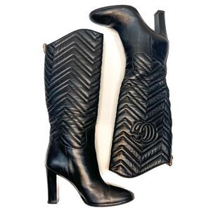Gucci GG Marmont Monogram Logo Heart Chevron Matelasse High Boots EU 38.5 US 8.5