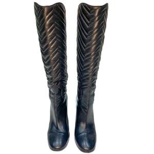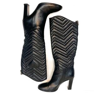 Gucci GG Marmont Monogram Logo Heart Chevron Matelasse Knee High Boots EU 38.5 US 8.5