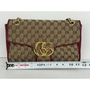 Gucci GG Marmont Monogram Matelassé Diagonal Shoulder Bag Beige and Red