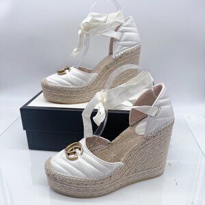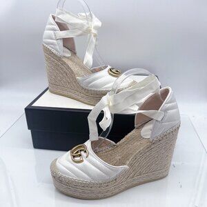 Gucci GG Marmont Platform MATELASSÉ Wedge Heels Espadrilles White Leather EU 39
