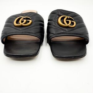 Authentic Gucci GG Marmont Quilted Chevron Sandals Slides Mules