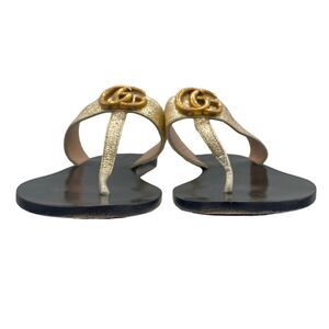 Gucci GG Marmont Thong Flat Sandal Metallic Gold Leather Size 37 US 7