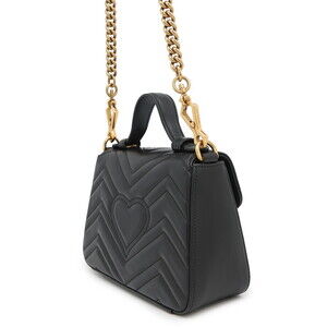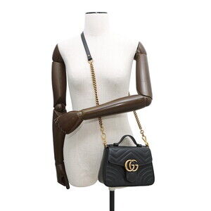 Gucci GG Marmont Top Handle Bag Chevron Chain Shoulder Bag Black
