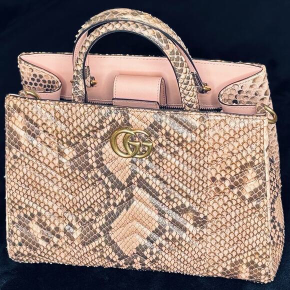 Pre loved stunning Gucci GG python Marmont tote with hand and shoulder straps. Also has a dust bag and Entropy COA.