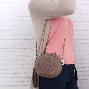 Gucci GG Mini Soho Gray Nubuck Leather Crossbody and Shoulder Purse Bag A5391