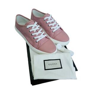 Gucci GG Monogram Canvas Low Top Sneaker Size 39.5 US 9.5 Pink White Tennis Shoe