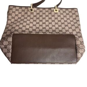 Crafted from durable canvas material, the tote features Gucci's iconic GG monogram pattern, which is instantly recognizable and adds a touch of sophistication to any ensemble. This is a great work bag, and can easily hold all of your essentials!