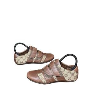 Gucci GG Monogram Low Top Brown Leather Sneakers Size 36 euro