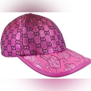 Gucci GG Monogram Metallic Pink Baseball Cap hat