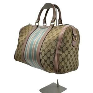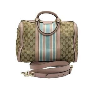 Gucci GG Monogram Vintage Web Medium Boston Pink Blue*AWESOME 2-WAY!