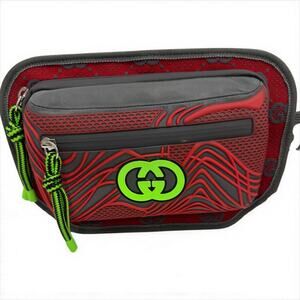 Gucci GG Nylon Waist Bag Nylon Rubber Red Grey 752102