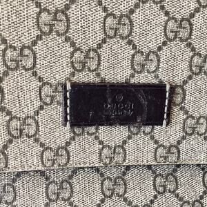 Authentic GG PLUS DIAPER BAG from Gucci in good preowned condition. No dust bag, box, or paperwork. Bag only. This bag was loved and used with care. It has small damage on one side and bottom as pictured. The shoulder strap shows some wear, but no damage and is very sturdy. Inner pockets have some dust from use. No stains or odors.