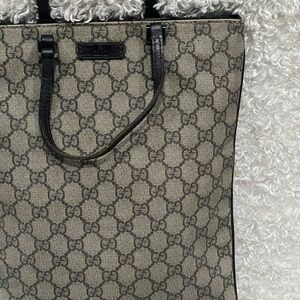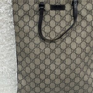 Gucci GG Plus Monogram Flat Vertical Tote Dark Brown. Pre-owned. Minor signs of wear, scuffs, distressed. See pictures