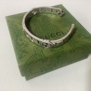 Gucci GG Silver Vintage Cuff Bracelet Bangle