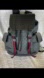 The Gucci Soft Backpack GG Supreme Blue Red Web Black Grey comes in a black and grey color scheme.