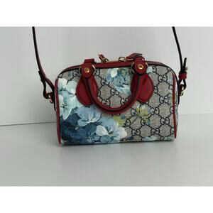 This Gucci Boston Mini Bag is crafted from the house’s iconic GG Supreme coated canvas with a vibrant Blooms floral print and refined leather trim. The versatile design includes a structured top handle and a detachable crossbody strap, offering multiple ways to wear. A secure zip closure opens to a fabric-lined interior that’s perfectly sized for daily essentials.