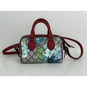Gucci GG Supreme Blooms Boston Mini Bag with Top Handle and Crossbody Strap
