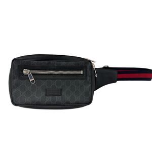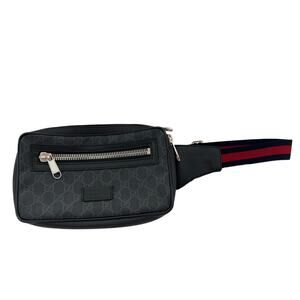 Gucci GG Supreme Canvas Belt Bag with Web Strap – Black