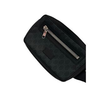A sleek and modern classic, this Gucci belt bag is crafted from black GG Supreme coated canvas with tonal leather trim and silver-tone hardware. Designed for functionality and style, it features a roomy main compartment, a front zip pocket, and Gucci’s signature red-and-blue web adjustable strap. Includes Entrupy Certificate of Authenticity for verified authenticity.