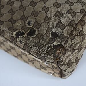 Condition is Pre-Owned. Fair, with major wear, fraying, & pilling at the top handles. Major tears at the upper canvas & corners. Sticky residue at the upper canvas. Scratches at the hardware. Visible cracking & wear at the leather trim. Stains & discoloration at the interior lining.