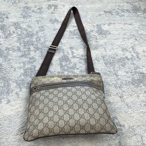 Gucci GG Supreme Crossbody Messenger Bag Brown Tan Monogram Unisex Flat