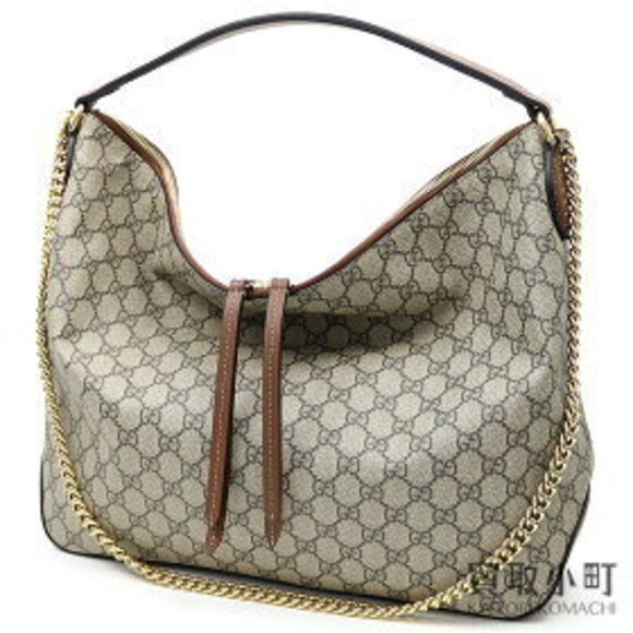 Gucci GG Supreme Hobo Bag Beige Ebony Chain Shoulder Strap Double