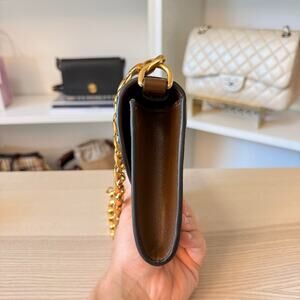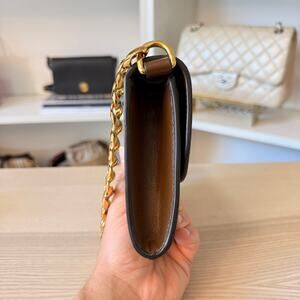 Description: Clean inside and outside. Minimal overall wear. Light yellow stains on exterior under flap as pictured. Missing fabric strap. Pair it with a crossbody strap from OrganizeMyBag instead.
