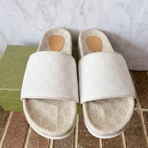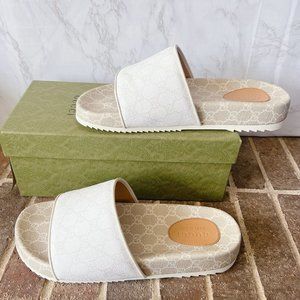 Gucci GG Supreme Monogram Demetra Logo Men Slide Sandal White Canvas US 11.5