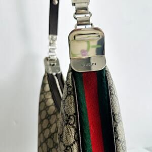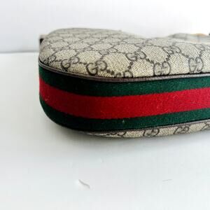 Gucci GG Supreme Monogram Textured Calfskin Web Large Shoulder Bag Beige Ebony New Acero